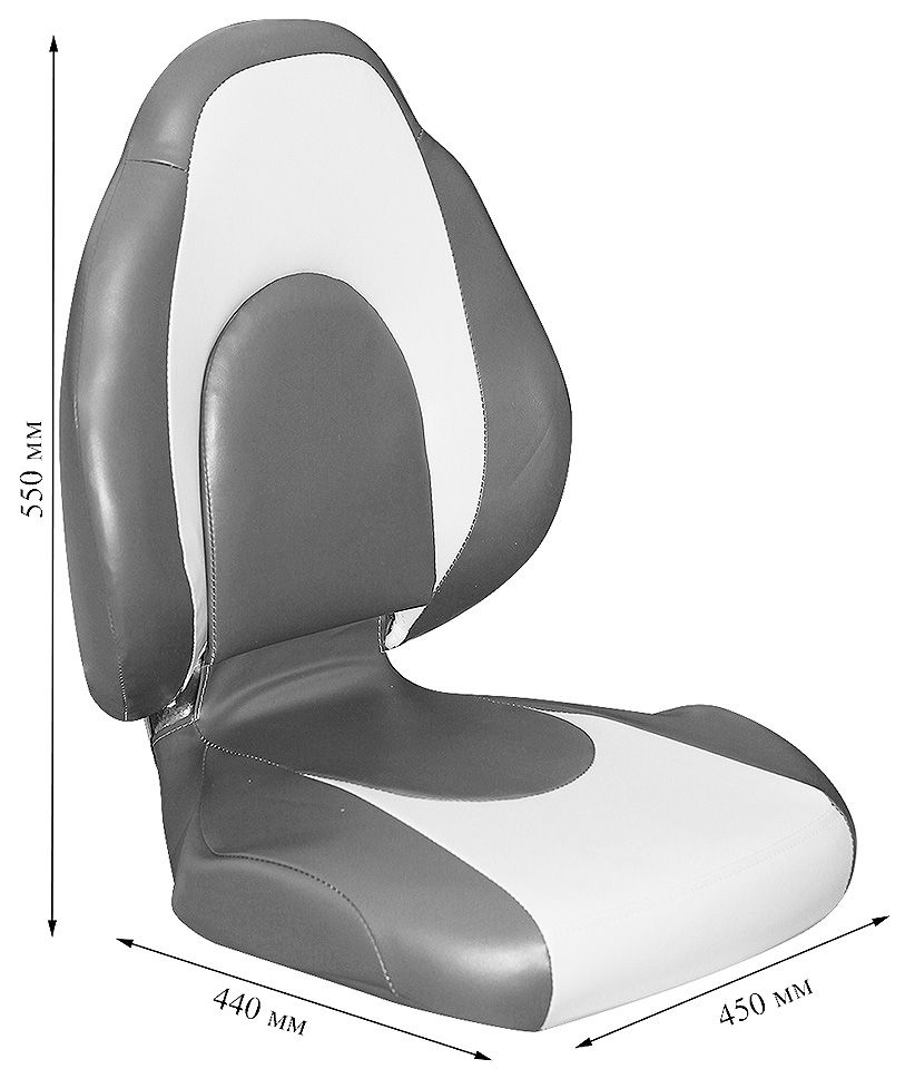 Сиденье с боковой поддержкой. Обивка из винила, устойчивого к воздействию влаги и ультрафиолета и не впитывающего жидкостей.