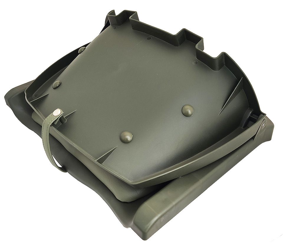 Недорогое и практичное сиденье. Основа из прочного пластика и мягкие виниловые подушки. Размеры (ширина, глубина, высота): 508×483×406 мм. Цвета: серый, синий, серый с синим, серый с черным, зеленый, камуфляж. Страна-производитель: Китай.