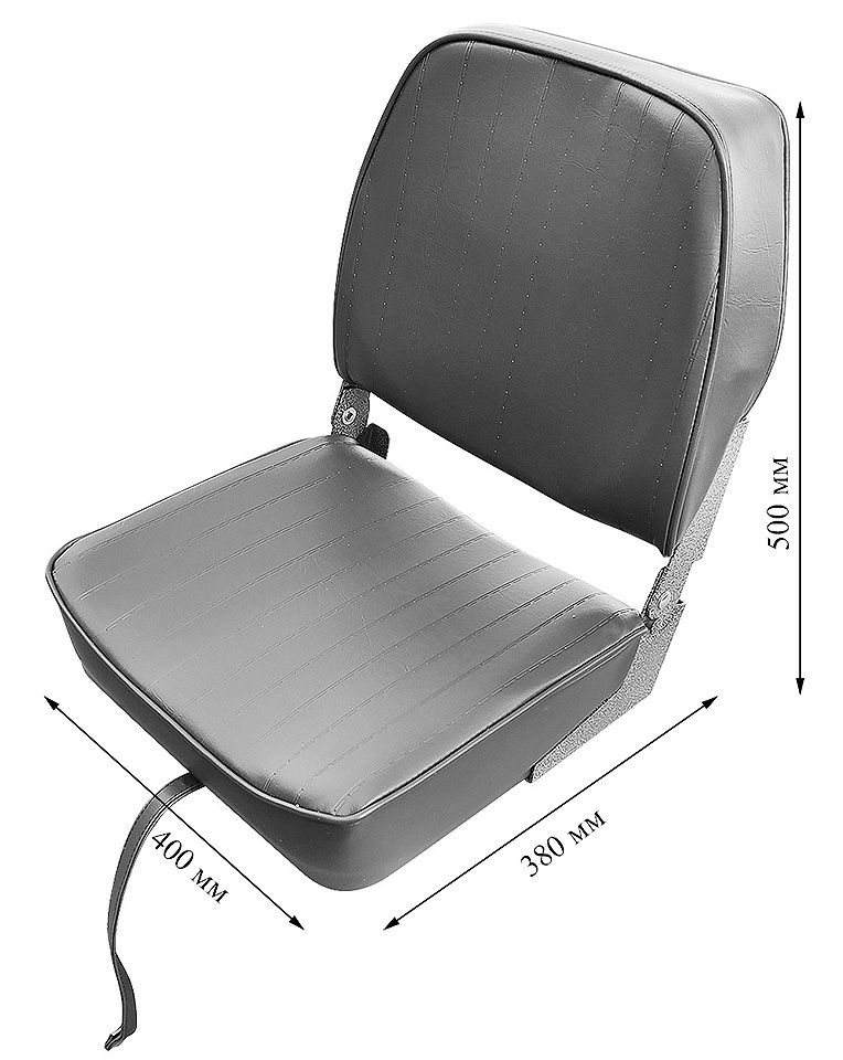 Мягкое сиденье со складной спинкой. Обивка из винила, устойчивого к воздействию влаги и ультрафиолета, не выгорающего на солнце и не впитывающего жидкостей (чай, кофе, соки и вина не оставят на этом сиденье пятен). Размеры (ширина, глубина, высота): 40×40×48 см. Цвета: синий, синий с серым, серый, серый с черным, серый с красным, зеленый, белый, камуфляж. Страна-производитель: Китай.