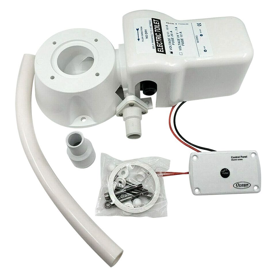 Практически любой яхтенный унитаз с ручной прокачкой можно легко превратить в электрический, если использовать предлагаемый комплект. Конверсии поддаются большинство моделей унитазов со стандартными и широкими чашами производства как "Matromarine", так и сторонних изготовителей, таких как "TMC", "Groco", "Raritan", "PAR", "RM 69", "Aquamarine", "Wilcox Crittenden", "Mansfield" и "Sealand". Главное условие – заменяемая чаша унитаза должна предусматривать крепление четырьмя болтами, расположенными на окружности диаметром 95 мм (3-3/4 дюйма). Помимо помпы и основы в комплект входят все необходимые для установки принадлежности: нержавеющий крепеж, прокладки, шланги. Диаметр патрубка впускного шланга: 12,7 мм. Диаметр патрубка выпускного шланга: 25,4 мм. Цвет: белый. Напряжение питания: 12 или 24 В. Номинальный ток: 13 или 7 А. Производитель: "Matromarine", Италия.