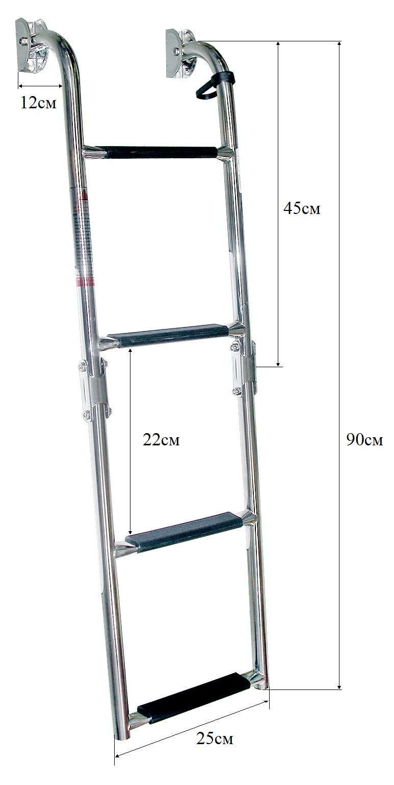 Складной трап из нержавеющей стали, 4 ступени, 90 см (10247446). Складной трап из нержавеющей стали. Обрезиненные ступени. Фиксированное крепление винтами. Отдельно может быть приобретено быстроразъемное крепление (код для заказа 10246166).
