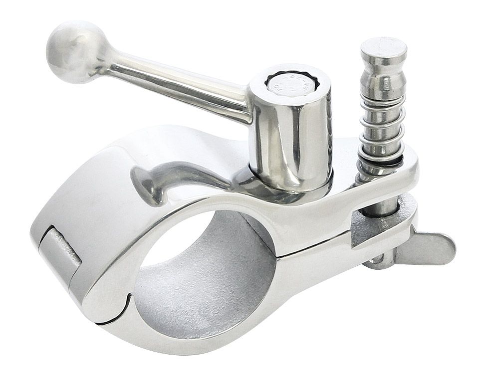 Кронштейн из нержавеющей стали. Обжимается с помощью винтовой рукоятки.