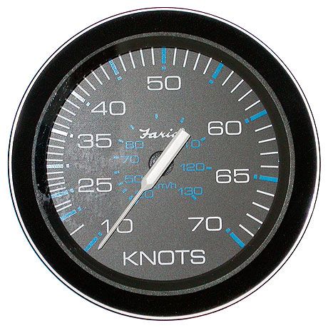 Двойная шкала узлы/км/ч. Стойкое к царапинам стекло. Черный циферблат с белыми цифрами, синими делениями и подсветкой по периметру. Белая стрелка с силиконовым демпфером, гасящим вибрацию и предотвращающим дрожание. Диапазон измерений: 0-30-50-70 узлов. Диаметр циферблата: 3 дюйма. Тип датчика: трубка Пито (приобретается отдельно - см. раздел аксессуары). Производитель: "Faria", США.