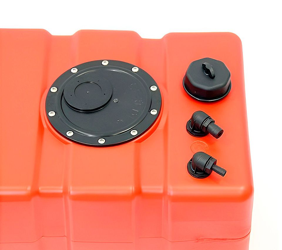 Заливная горловина с резьбовой крышкой. Два патрубка под шланги отбора топлива и вентиляции. Предусмотрена возможность установки датчика уровня топлива (приобретается отдельно). Длина: 50 см. Ширина: 35 см. Высота: 30 см. (+50 мм. высота крышки)Объем: 45 л. Материал: пластик. Производитель: "Ceredi", Италия.