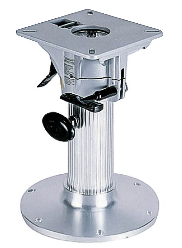 Регулируемая стойка из анодированного алюминия. Позволяет установить сиденье на необходимой высоте и повернуть его на необходимый угол вокруг вертикальной оси (в любую сторону на 360 градусов). Широкий фланец с шестью крепежными отверстиями для монтажа стойки к пайолу. Положение по высоте фиксируется фрикционным зажимом. Высота: 30-43 см. Производитель: "Garelick", США.