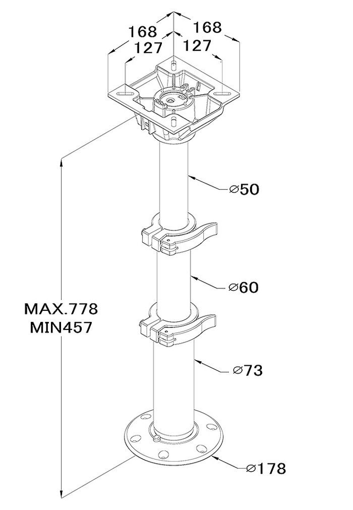 Стойка для столешницы с пневмоцилиндром (10268890). Телескопическая трехсекционная стойка столешницы с пневмоцилиндром.Диапазон регулировки высоты: 457-778 мм.Страна-производитель: Китай.