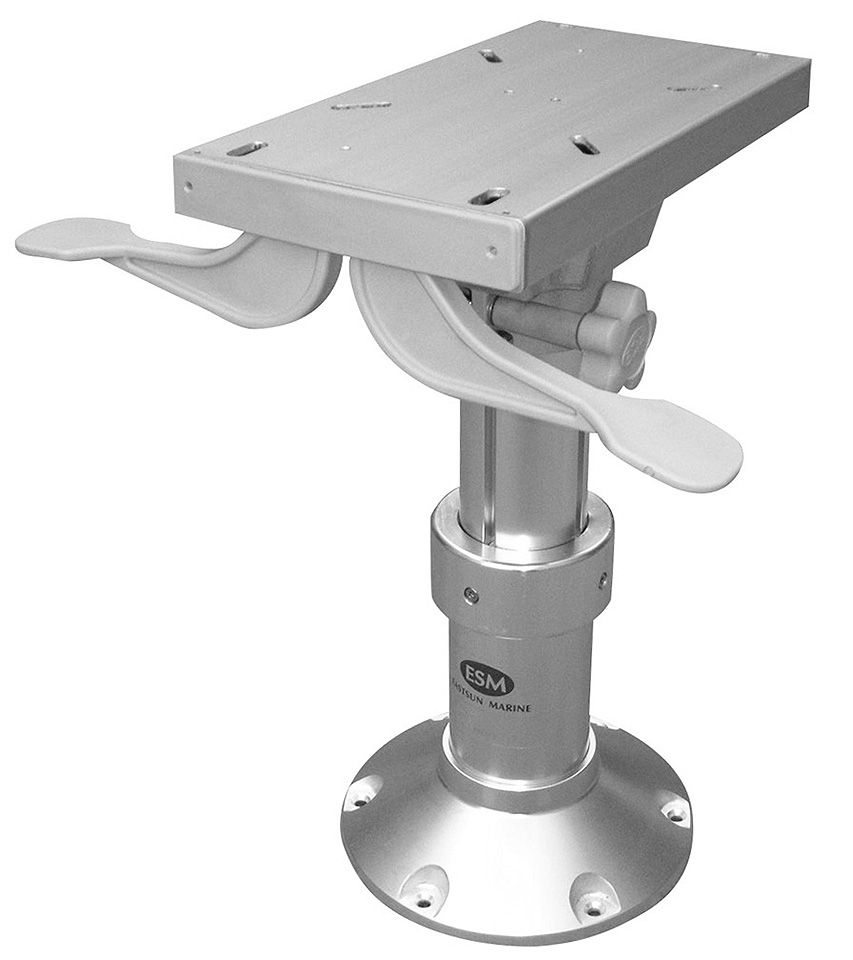 Мощная стойка для сидений. Полированный алюминий. Регулируемая высота. Возможность поворота вокруг вертикальной оси. Встроенный пневмоцилиндр регулируемой жесткости для аммортизации и облегчения регулировки. Салазки для возможности регулировки вылета сиденья в продольном направлении.