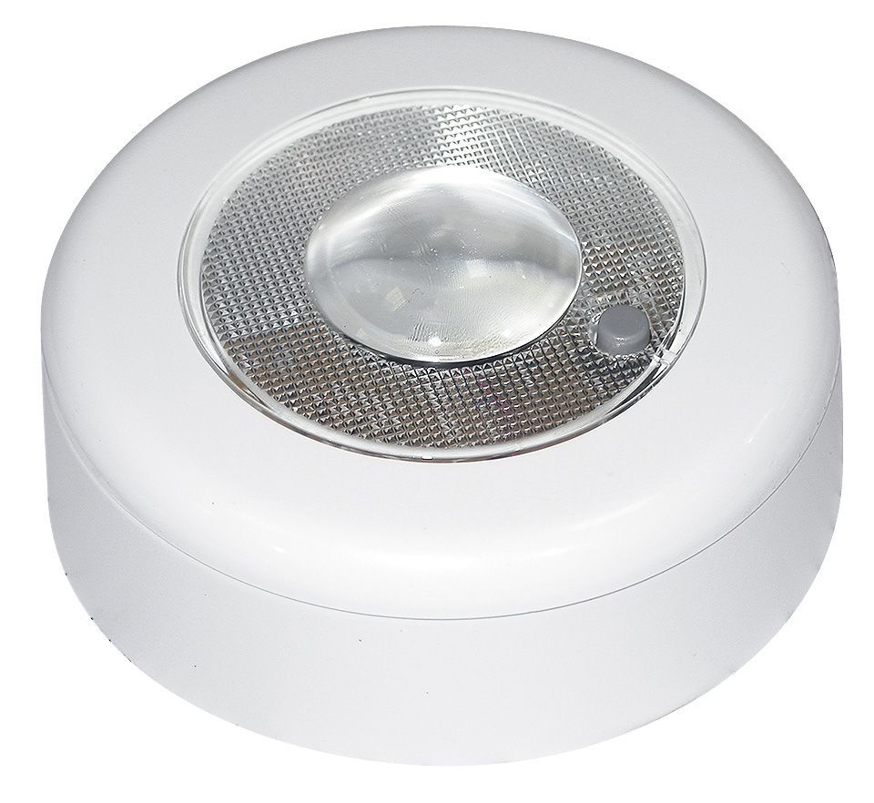 Светильник светодиодный, 1 светодиод (10250501). Энергосберегающий светодиодный светильник. Двойной способ установки - врезной и накладной (в комплект поставки входит съемное кольцо-корпус) Брызгозащищенный. Кнопка включения на корпусе.