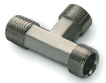 Т-образный штуцер для рулевых машинок (10248118). Используется для крепления гидравлических шлангов и балластных трубок к рулевым машинкам "BayStar" и "SeaStar". Резьбы: 3/8″ (конусная) и 9/19-24". 3 шт в комплекте. От предыдущего штуцера отличается расположением резьбы 3/8.