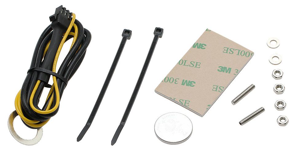 Защищен от действия воды по классу IP65 (защита от дождя и брызг). Кабель тахометра длиной 0,6 м (при необходимости можно самостоятельно удлинить до 5 метров, используя похожий провод, количество витков провода, намотанных вокруг свечного провода возможно придется увеличить до 10). Кабель датчика температуры длиной 1,1 м (при необходимости можно удлинить, используя 4-метровый удлинитель № 10261616).