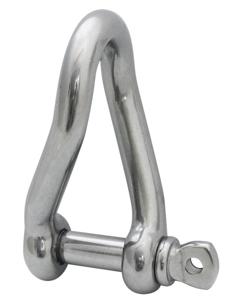 Такелажная скоба с поворотом "Мореман", 4 мм. (10014249). Такелажная скоба из полированной нержавеющей стали, повернутая на 90 градусов. Изготовлена методом ковки.Материал: нержавеющая сталь. Калибр: 4, 5, 6, 8, 10, 12 мм. Производитель: Китай