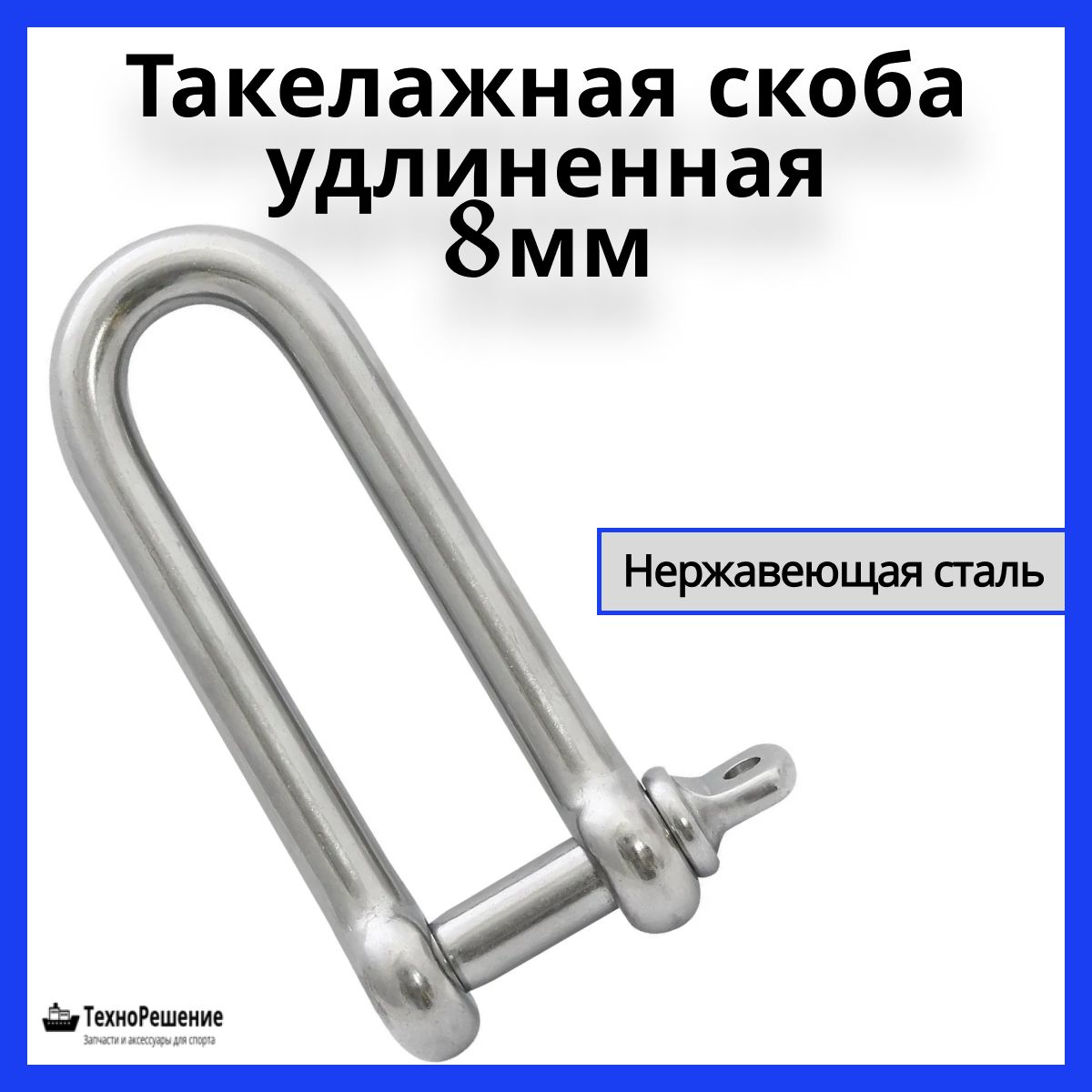 Такелажная скоба удлиненная, 8 мм. Удлиненная такелажная скоба из полированной нержавеющей стали. Изготовлена методом ковки. Страна-производитель: Китай.