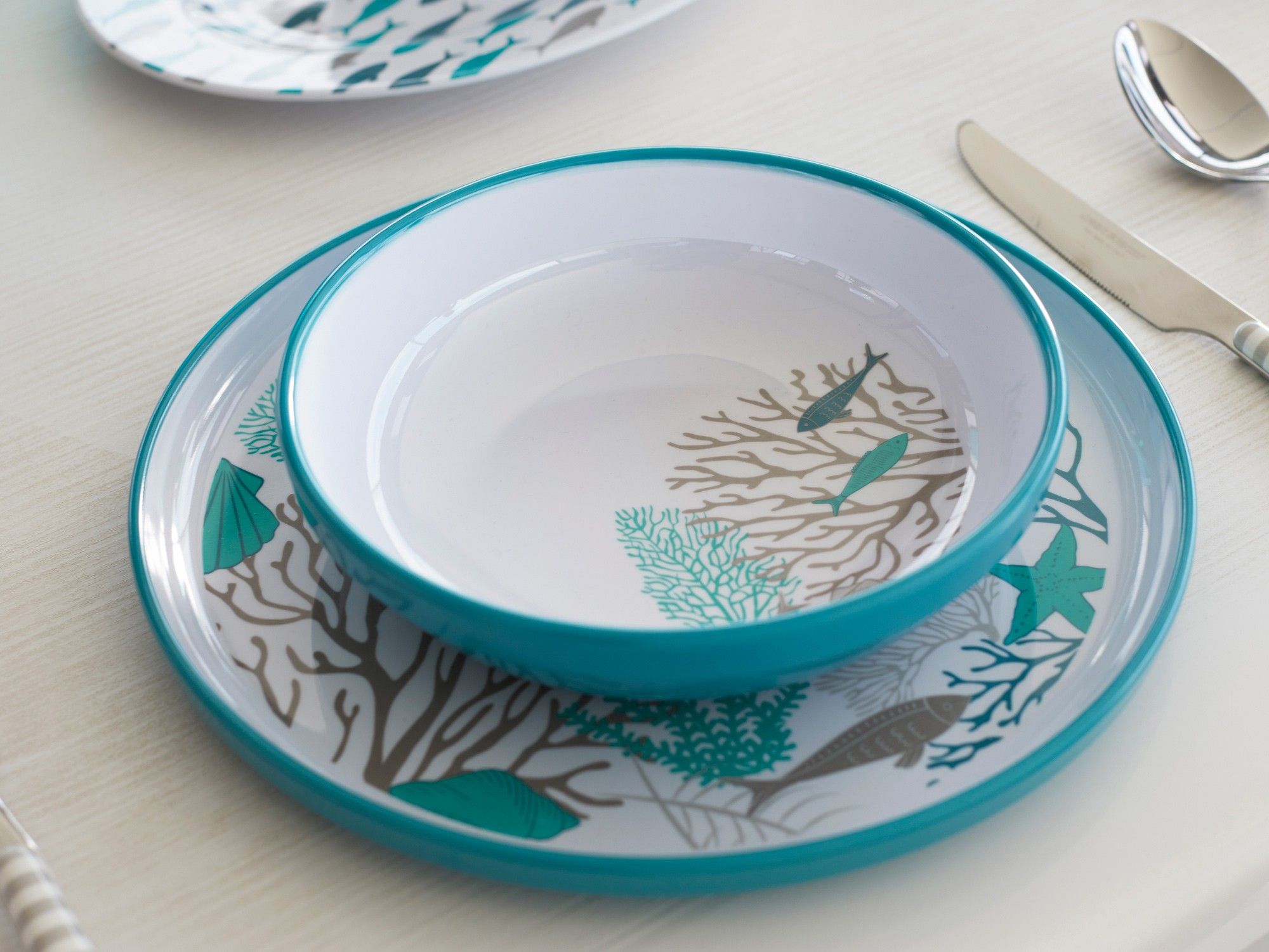 Тарелки десертные небьющиеся нескользящие Coastal, 6 шт (10268410). Тарелки из меламина - стойкого к ударам и царапинам керамоподобного пластика. Донца тарелок снабжены силиконовыми кольцами, которые эффективно предотвращают скольжение.Диаметр: 21 см.