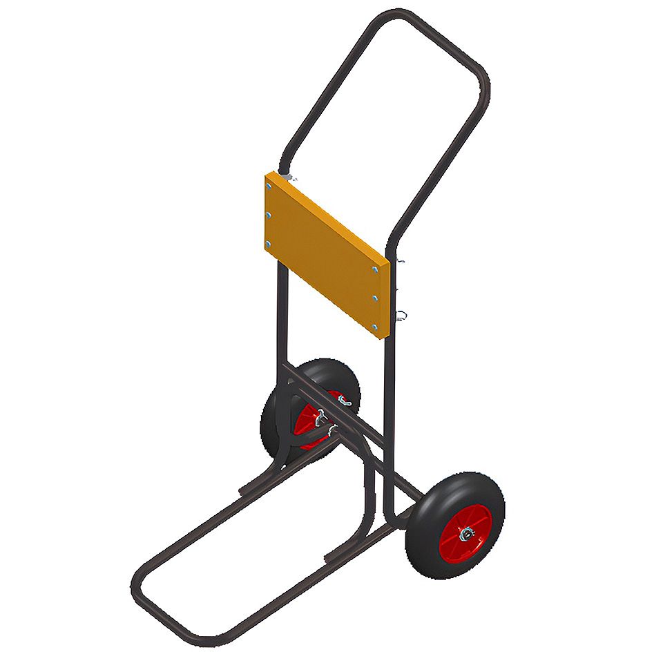 Каркас изготовлен из стали и покрыт порошковой краской синего цвета. Рукоятка тележки при необходимости демонтируется.