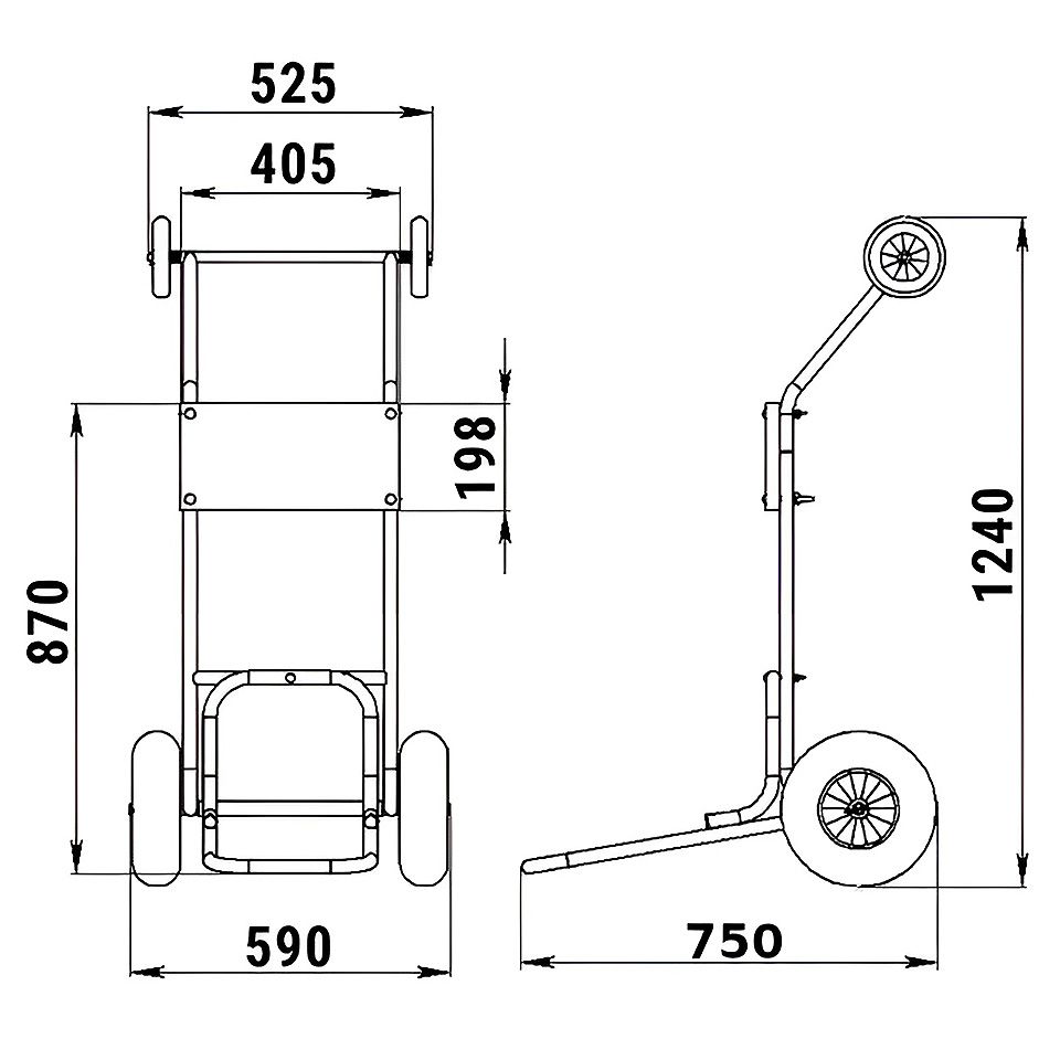 Конструкция тележки имеет съёмную рукоятку с дополнительными колесами, что облегчает погрузку двигателя в кузов автомобиля.
