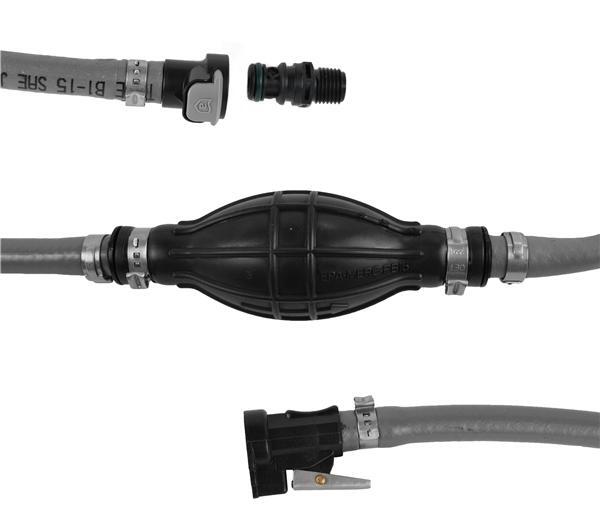 Топливный шланг с подкачивающей грушей. В комплекте – штуцеры топливного шланга для моторов "Mercury", "Johnson"/"Evinrude", "Yamaha" или "Honda".