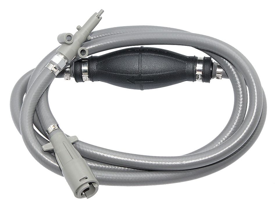 Шлаг топливный с подкачивающей помпой (грушей) и быстроразъемными штуцерами для двигателей "Mercury" или "Yamaha". Внутренний диаметр шланга: 5/16 дюйма (7,9 мм). Изготовлен из прочной, стойкой к компонентам топлива и ультрафиолету резины. Два варианта, отличающиеся эластичностью резины: стандартный и для местностей с холодным климатом.