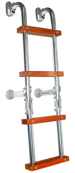 Трап "Kiria", 76 см, 2+2 ступени (10246742). Складной трап из нержавеющей стали. Ступени из тика. Фиксированное крепление винтами. Отдельно может быть приобретено быстроразъемное крепление (код для заказа 10246166).