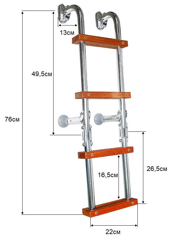 Ширина: 220 мм.Длина: 56, 76 см.Диаметр трубы: 22смКоличество ступеней: 2+1, 2+2.Страна-производитель: Китай.