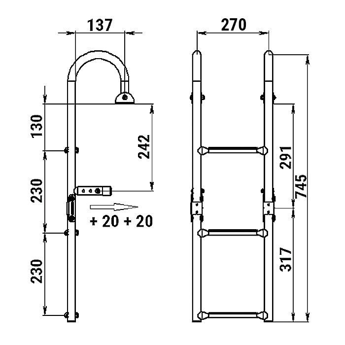 Трап складной предназначен для установки на горизонтальную поверхность кормы плавсредства.