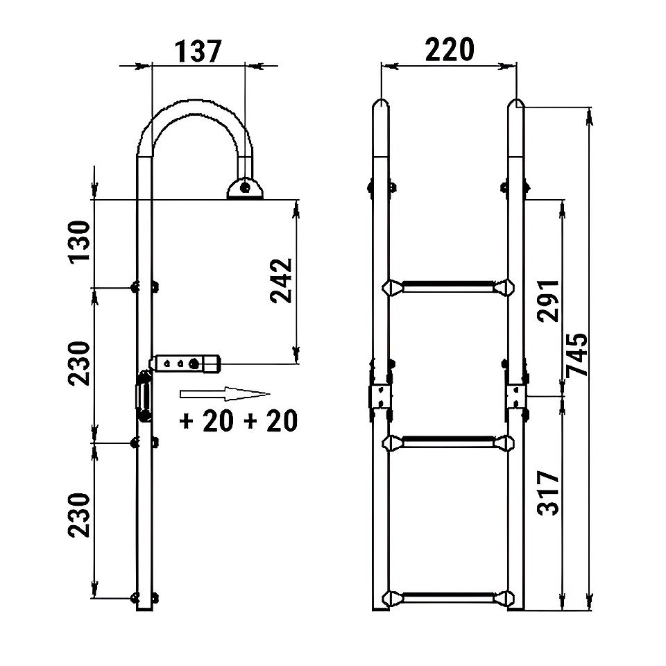 Трап складной предназначен для установки на горизонтальную поверхность кормы плавсредства.