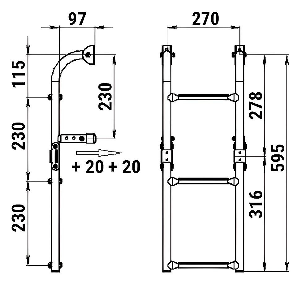 Трап складной с вертикальным креплением, 3 серых ступени (ширина 270 мм.) (10269463). Трап складной предназначен для установки на вертикальную поверхность кормы плавсредства.
