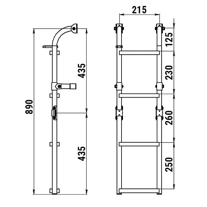 Трап складной предназначен для установки на верткальную поверхность кормы плавсредства.