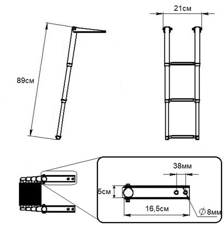 Трап складной телескопический "Мореман", 210 мм, 3 ступени, длина 368/888 мм (10247443). Складные телескопические трапы с 3-4 обрезиненными ступенями.