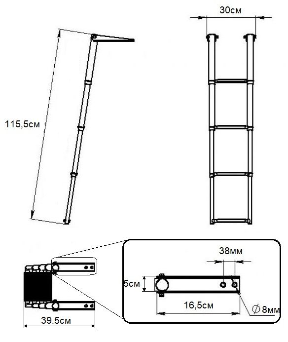 Трап складной телескопический с четырьмя ступенями, 300 мм (10247442). Складной телескопический трап с четырьмя обрезиненными ступенями.