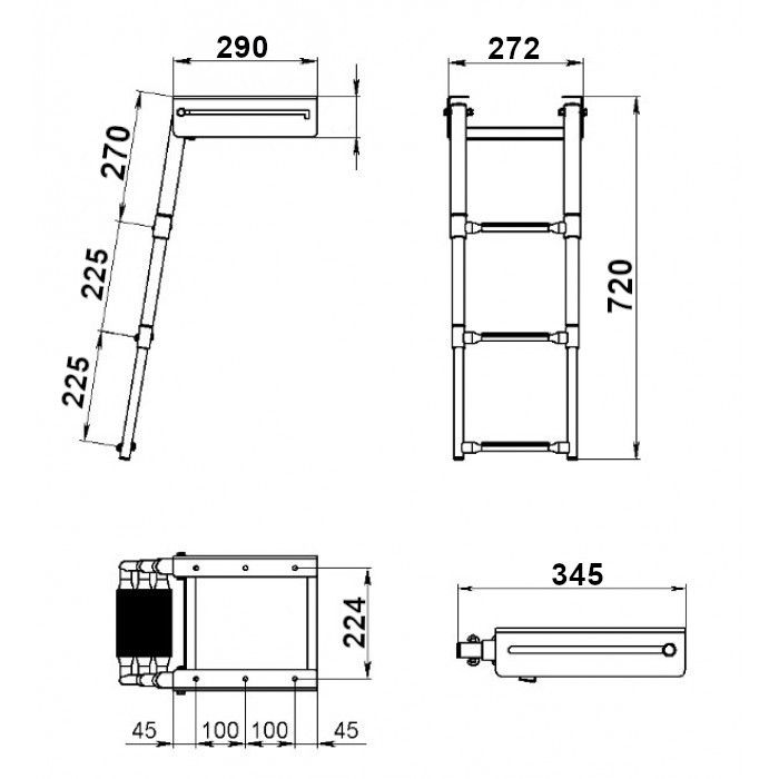 Трап телескопический выдвижной, 3 черных ступени (ширина 272 мм.) AISI 316 (10269559). Трап выдвижной телескопический предназначен для установки в кормовой части плавсредства под горизонтальную площадку.