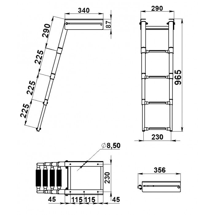 Трап телескопический выдвижной, 4 черных ступени (ширина 290 мм.) AISI 316 (10269553). Трап телескопический выдвижной, 4 черных ступени (ширина 290 мм.) AISI 316