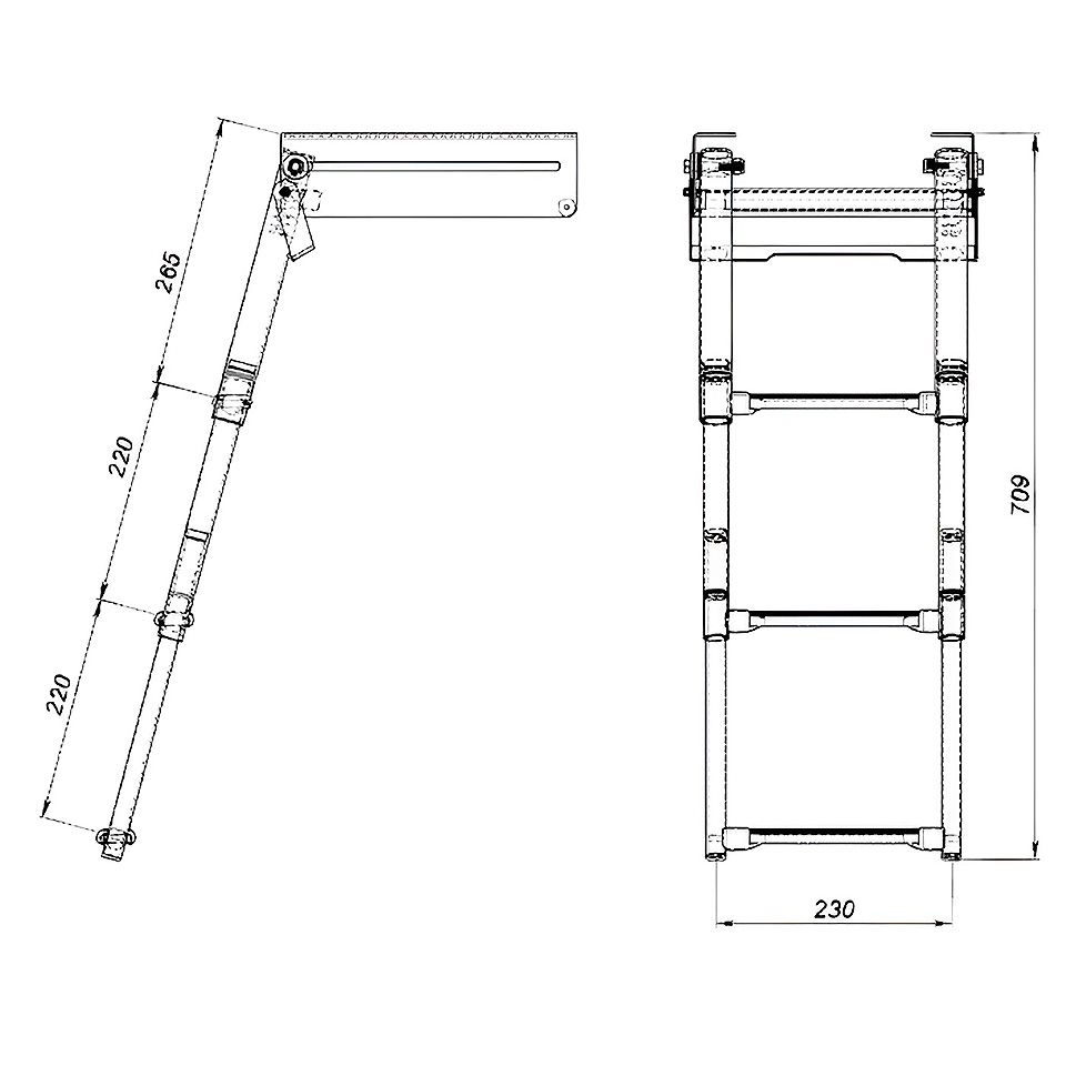 Трап телескопический выдвижной с фиксирующим механизмом, 3 серых ступени (ширина 291 мм.) (10269543). Трап выдвижной телескопический предназначен для установки в кормовой части плавсредства под горизонтальную площадку.