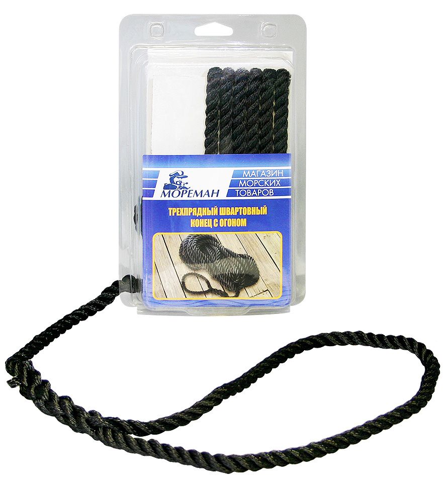 Трехпрядный швартовный конец, 12,7 мм x 7,5 м, черный (10255131). Новинка! Готовый трехпрядный швартовный конец. Имеет заплетенный фабричным способом огон. Изготовлен из качественного нейлона. Различные цвета, длины и диаметры.