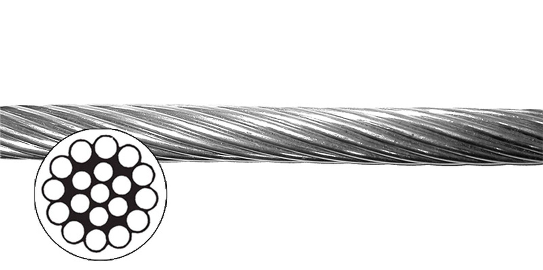 Жесткий трос из нержавеющей стали AISI 316. Плетение 1*19. Диаметр: 4, 6, 8, 10, 12 мм Страна-производитель: Италия