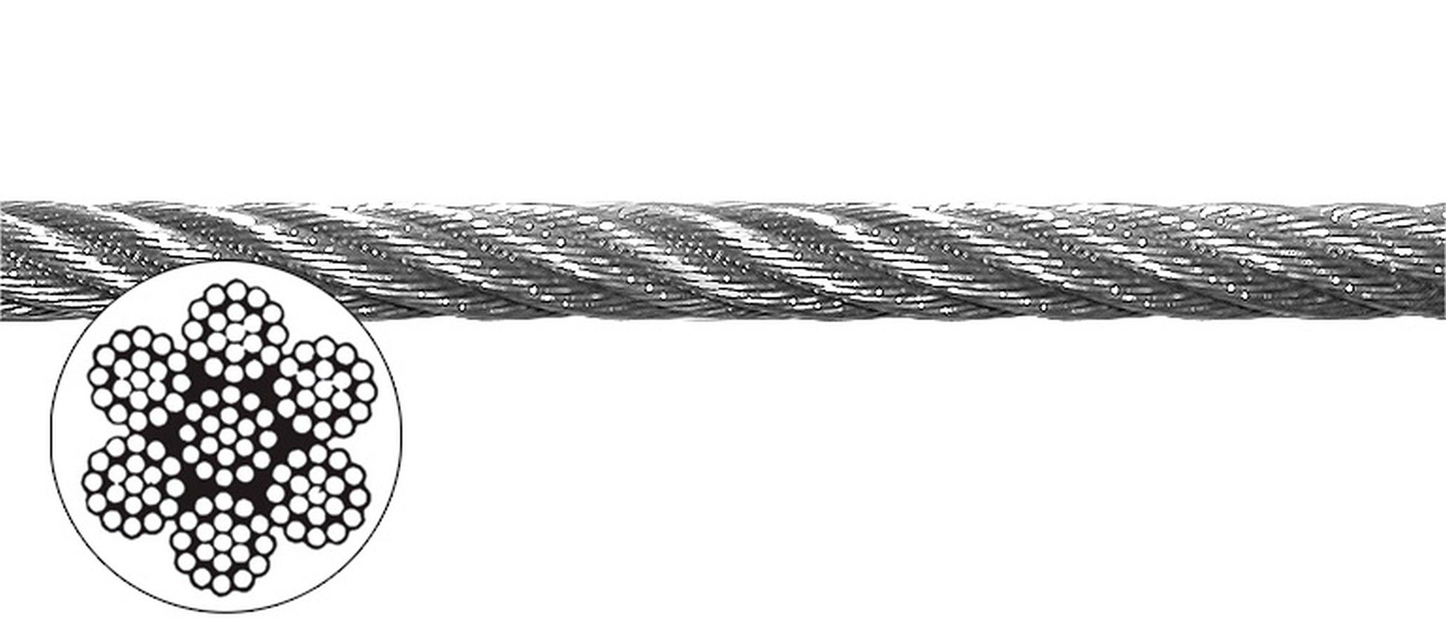 Мягкий трос из нержавеющей стали AISI 316. Плетение 7*19. Диаметр: 4, 6, 8, 10 мм Страна-производитель: Италия