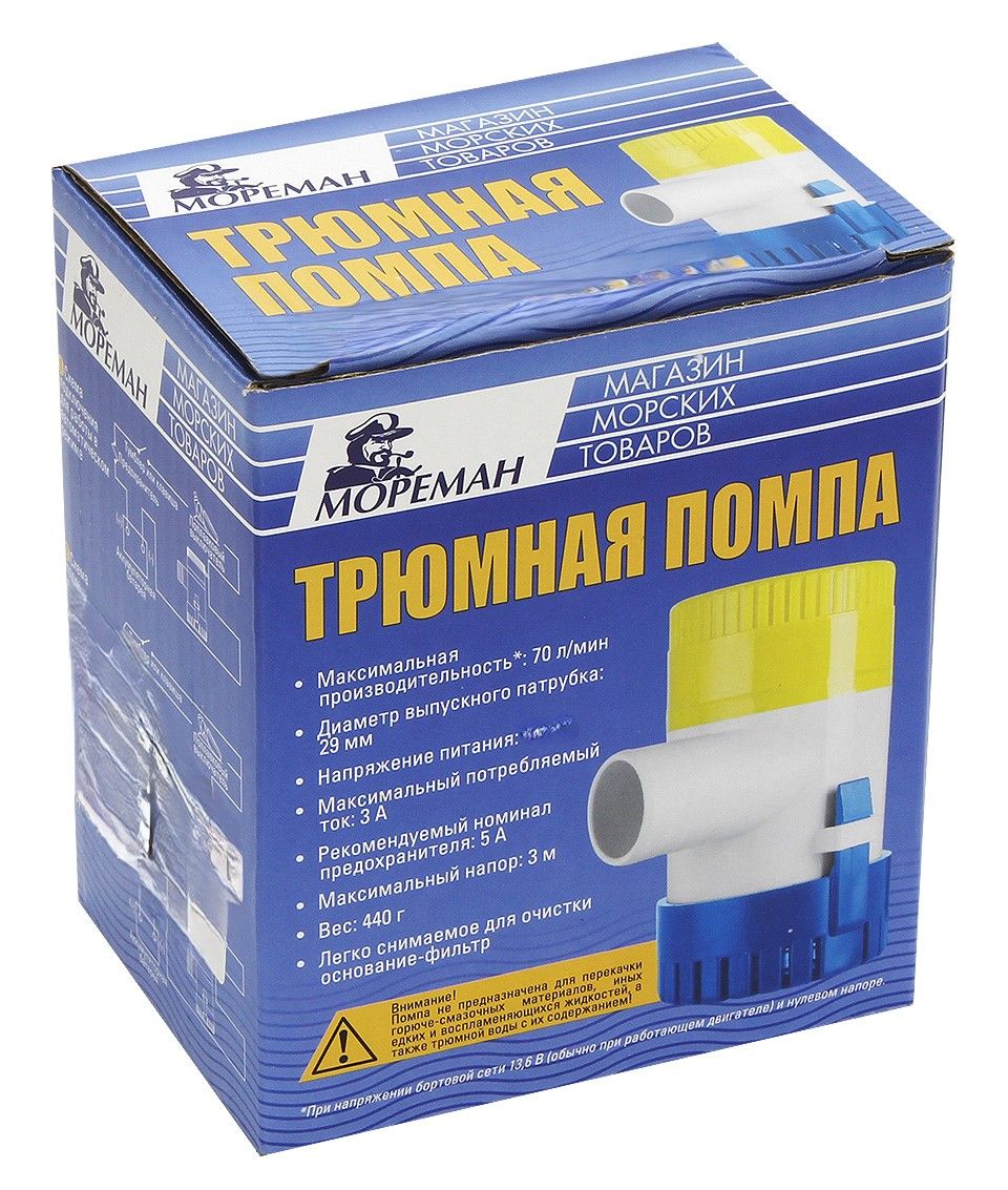 Трюмная помпа, 70 л/мин, 24 В (10264005). Электрическая трюмная помпа производительностью 70 л/мин*. Применяется для откачки трюмной и подсланевой воды. Включается по мере необходимости владельцем судна или по мере поступления воды автоматическим выключателем (приобретается отдельно). Съемное основание-фильтр.