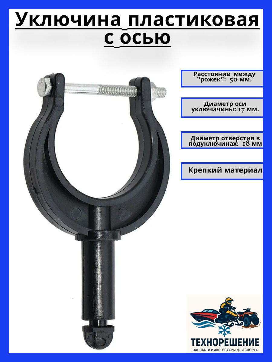 Уключина пластиковая с осью, 50 мм х 17 мм, белая (10258955). Пластиковая уключина со стальной осью (подуключины приобретаются отдельно).Расстояние между "рожек" 50 мм. Диаметр оси уключичины - 17 мм.Диаметр отверстия в подуключинах - 18 мм.