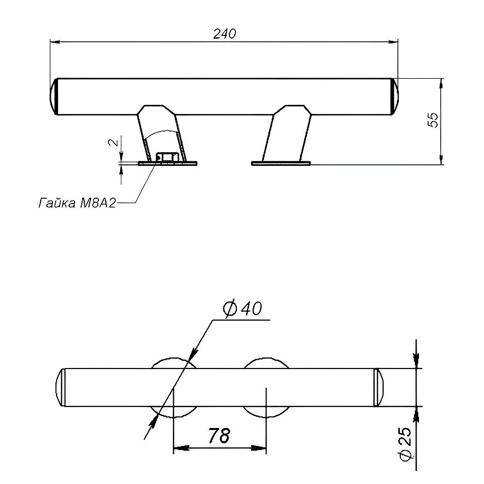 Утка швартовая 240 мм, нержавеющая сталь (10268628). Утка швартовая предназначена для крепления швартовых и якорных канатов во время стоянки.