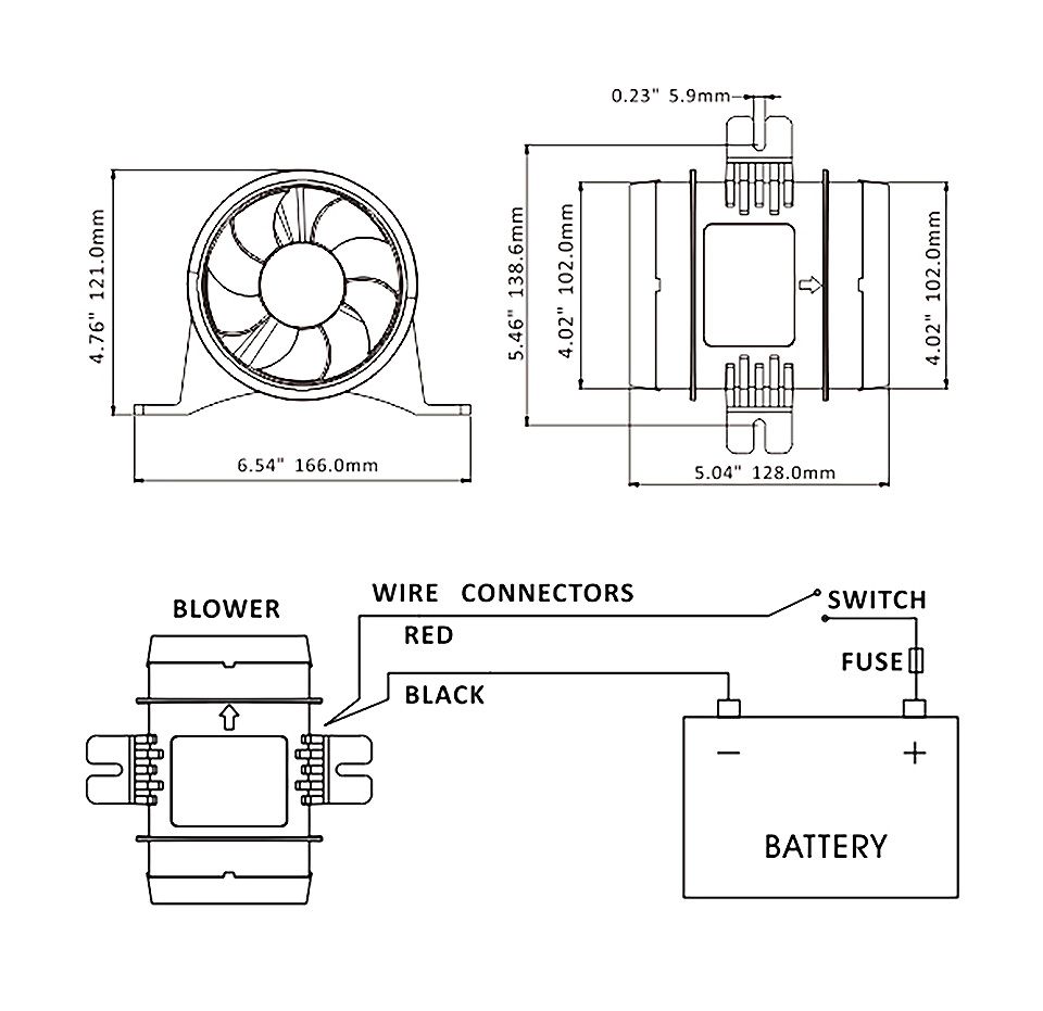 Вентилятор, 6,6 куб. м/мин, 12 В (10269267). Вентилятор осевой с влагозащищенным электродвигателем. Производительность: 6,6 куб. м/мин. Диаметр патрубков: 102 мм. Страна-производитель: Китай.