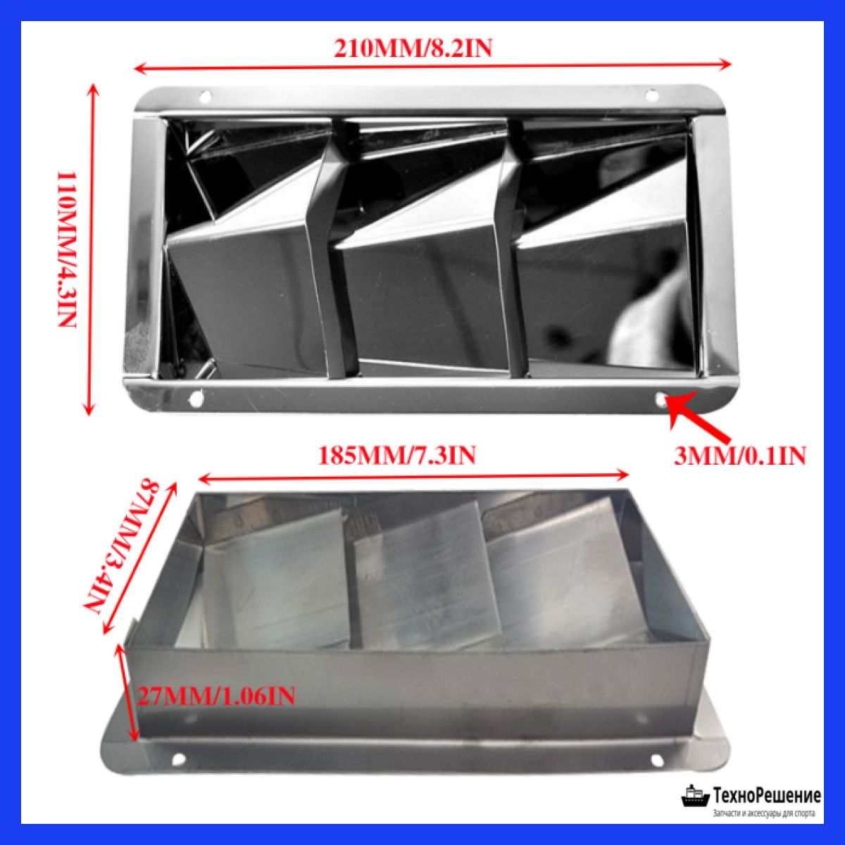 Вентиляционная решетка, 210x110x27мм (10240163). Вентиляционная решетка из нержавеющей стали. Производитель: "ТМС", Тайвань.