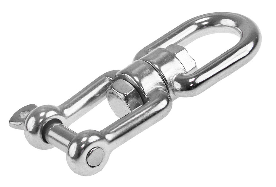 Вертлюг рым/такелажная скоба, 8 мм (10005817). Вертлюг из "морской" нержавеющей стали AISI 316 (сталь с добавлением молибдена, отличающаяся большей устойчивостью к действию растворов солей и кислот).