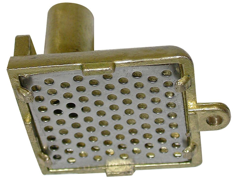 Водозаборник для трюмной помпы, вертикальный патрубок (10249306). Бронзовый водозаборник для трюмной помпы. Решетка из нержавеющей стали. Патрубок по шланг диаметром 16-19 мм.