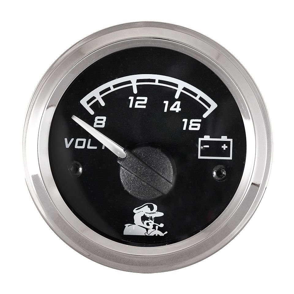 Вольтметр, "Мореман" 8-16 В, белый циферблат (10252229). Белый или черный циферблат. Экранированная конструкция для защиты от электромагнитных помех.