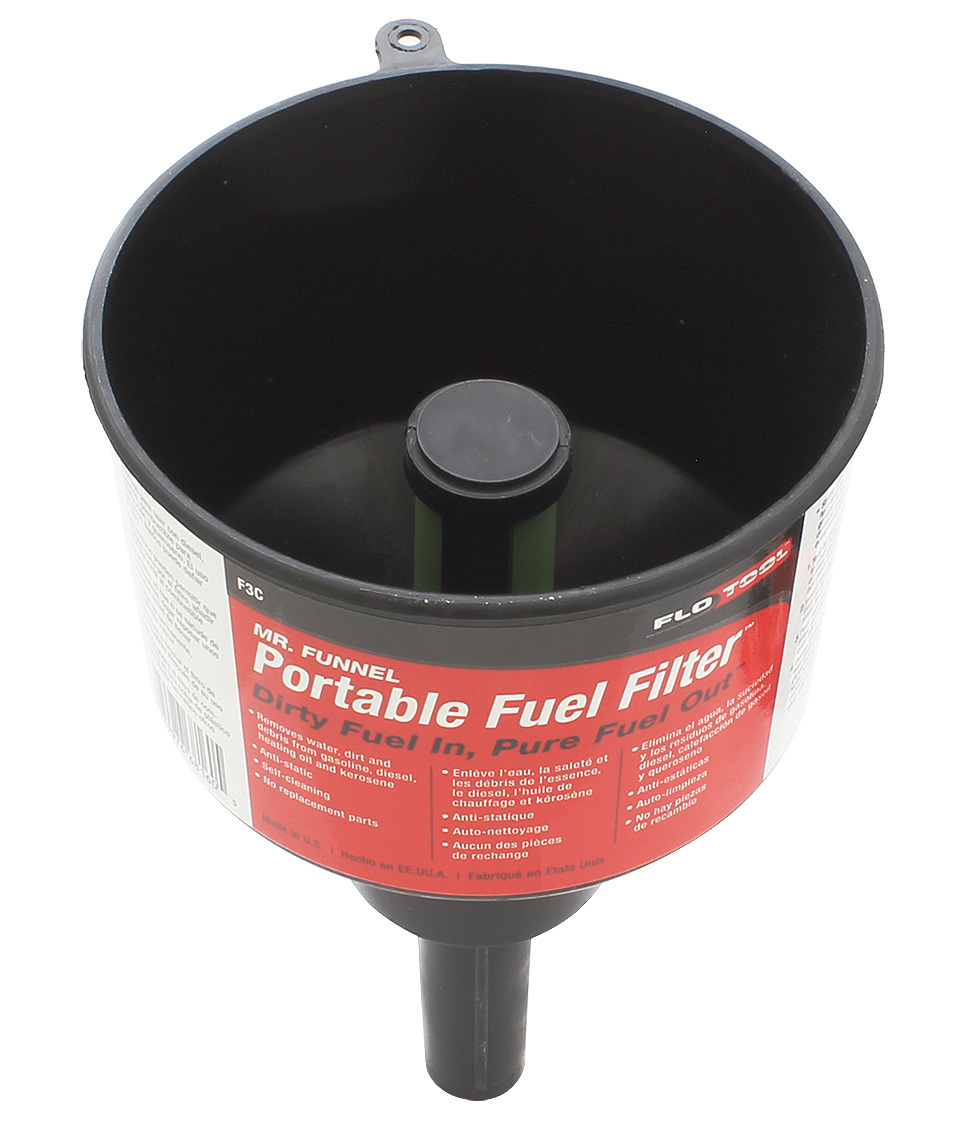 Воронки, снабженные микрофильтрами из нержавеющей стали с тефлоновым покрытием. Надежно отфильтровывают грязь и воду из топлива любой степени загрязненности. Фильтры пригодны для бензина, керосина, дизельного топлива. Все модели снабжены носиком для удобства слива фильтрата. Корпуса из токопроводящего полипропилена могут быть заземлены для предотвращения появления искры от статического электричества.Пропускная способность (л/мин): 10, 13,25; 18,9; 45,4Диаметр воронок (мм): 90, 140, 215Производитель: "Mr. Funnel", США