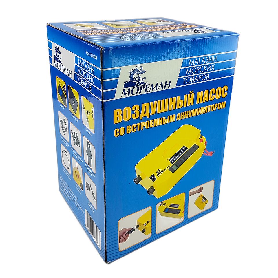 Воздушный насос, аккумуляторный (10269057). Воздушный насос. Используется для накачивания разнообразных надувных изделий, включая надувные лодки с пайолами высокого давления, кайты и SAP-доски. Встроенный литиевый аккуммулятор без эффекта памяти.Развиваемое давление: 1200 мБар.Страна-производитель: Китай.