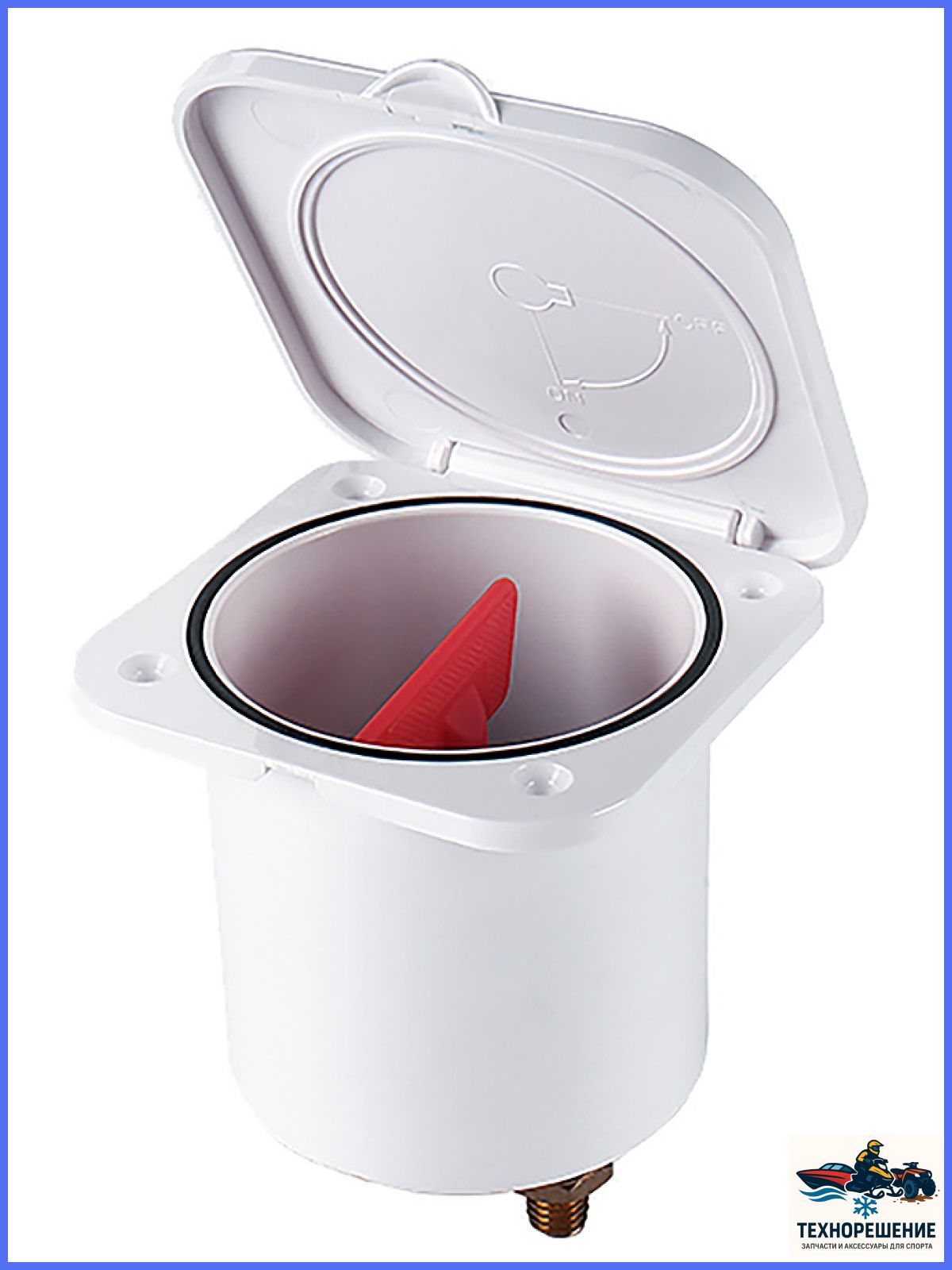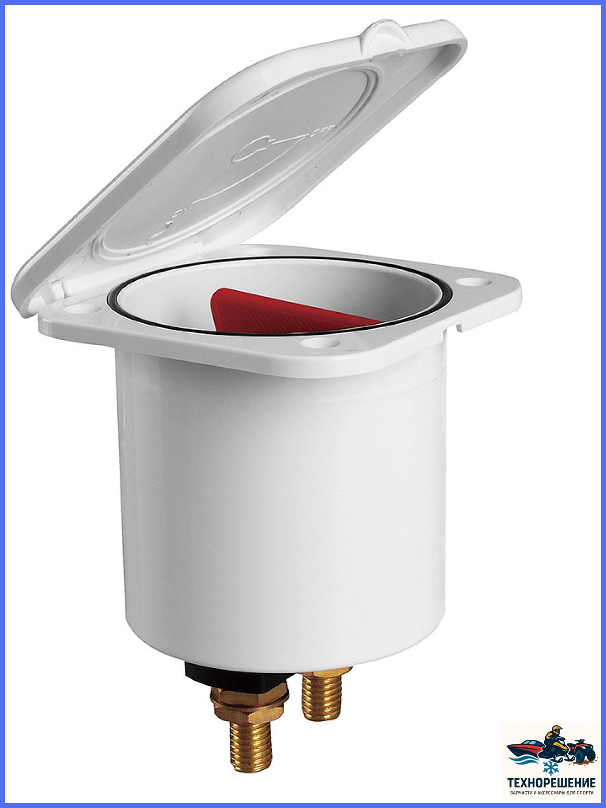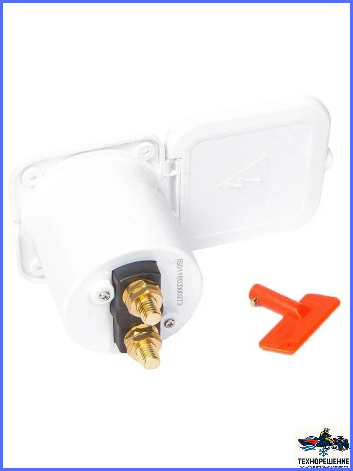 Выключатель массы для аккумулятора 12/24 В в закрытом пластиковом боксе с крышкой и съёмным ключом. Подходит для отключения питания АКБ на автомобилях, спецтехнике, катерах, лодках и иных установках. Предотвращает разряд аккумулятора при длительной стоянке и может использоваться для аварийного обесточивания сети.