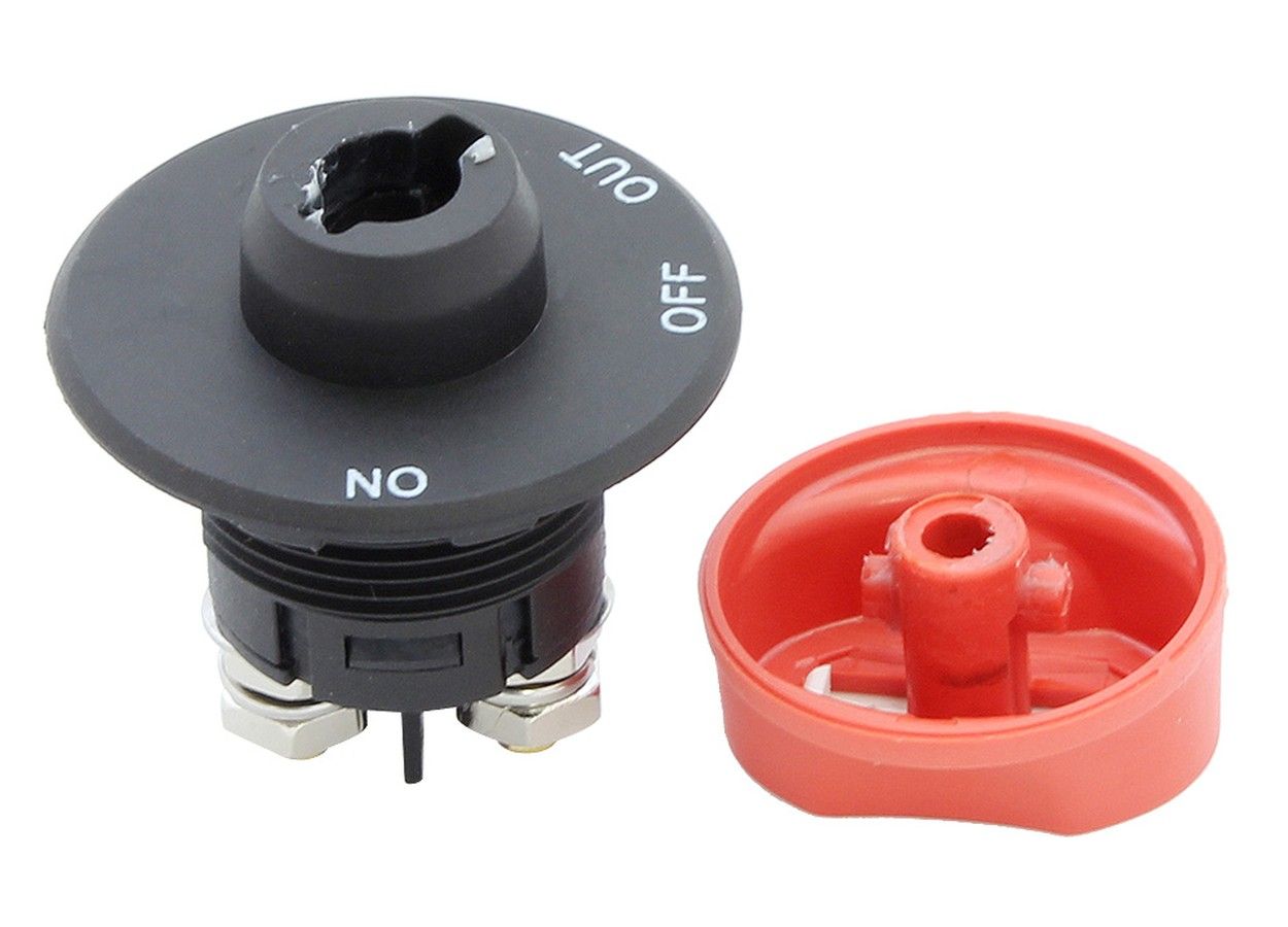 Выключатель вкл/выкл со съемной ручкой, 100/150 A (10266697). Компактный выключатель массы. Врезается в приборную панель или в переборку. Имеет съемную рукоятку, что позволяет использовать выключатель для предотвращения несанкционированного включения электропитания. Имеет три положения рукоятки: OFF (питание выключено), ON (питание включено), OUT (в этом положении рукоятку можно снять с выключателя).