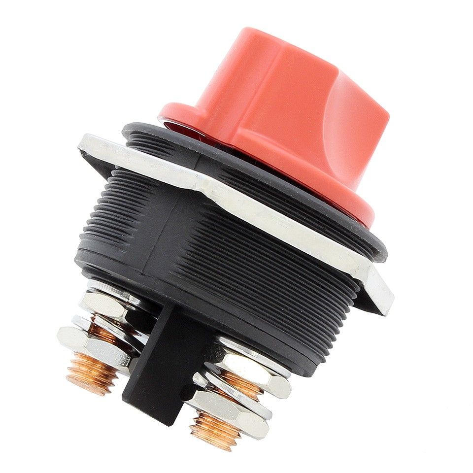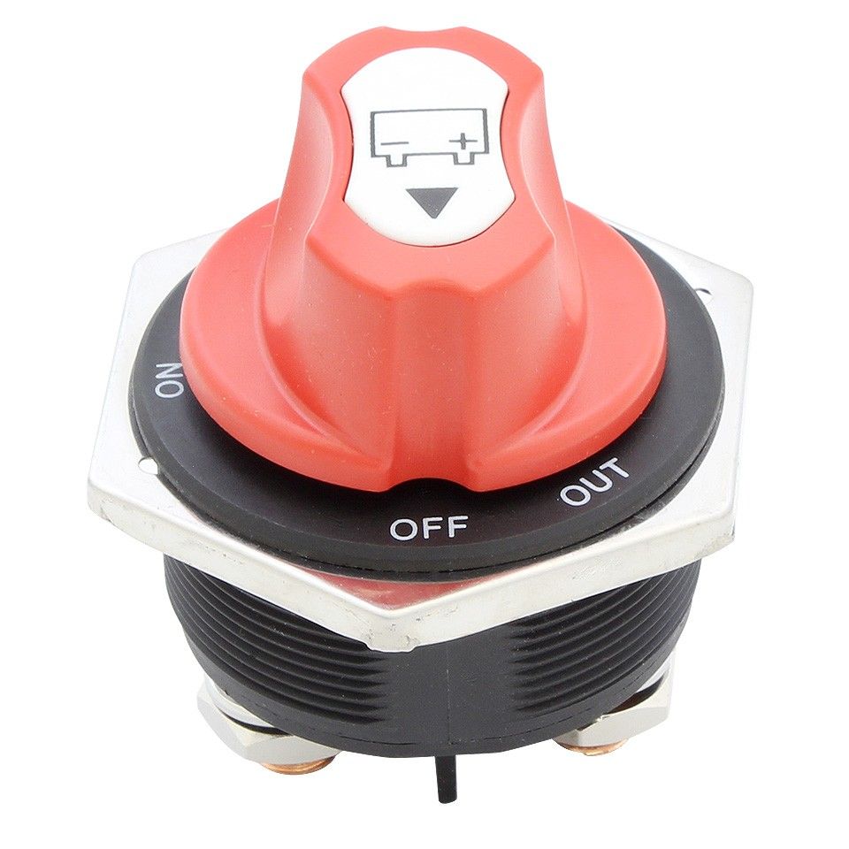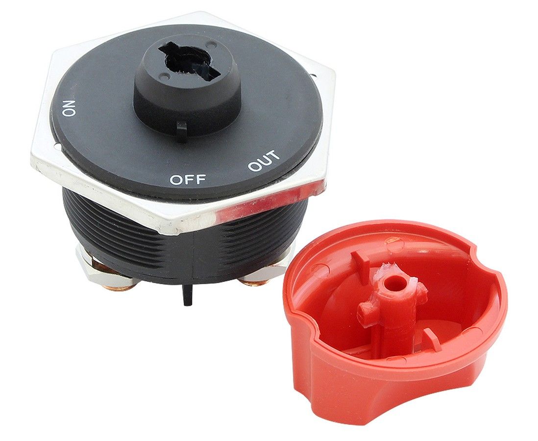 Выключатель вкл/выкл со съемной ручкой, 300/450 A (10266699). Компактный выключатель массы. Врезается в приборную панель или в переборку. Имеет съемную рукоятку, что позволяет использовать выключатель для предотвращения несанкционированного включения электропитания. Имеет три положения рукоятки: OFF (питание выключяно), ON (питание включено), OUT (в этом положении рукоятку можно снять с выключателя).brМаксимальный ток в постоянном режиме: 300 А.brМаксимальный ток в кратковременном режиме: 450 А.brМаксимальное напряжение: 32 В.brДиаметр монтажного отверстия: 52 мм.brРезьба на контактах: М10.brbrСтрана-производитель: Китай.br
