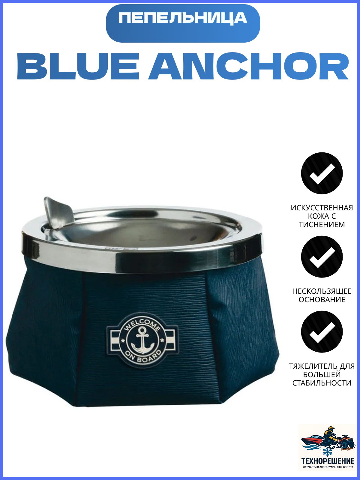Пепельница Blue Anchor (10265944). Крышка и емкость для пепла из нержавеющей стали. Искусственная кожа с тиснением (замша на ряде моделей). Нескользящее основание и утяжелитель для большей стабильности.Диаметр: 115 мм. Производитель: "Marine Business", Испания.