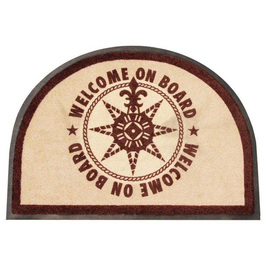 Коврик на нескользящей основе "Welcome on board", коричневый (10254691). Нескользящий коврик для яхты WELCOME ON BOARD коричневого цвета в форме полукруга изготовлен из высококачественного материала, ультраустойчивого к солнечным лучам. Материал: Полиэстер. Основание: резина. Машинная стирка 40?C. Не складывать. Не гладить. Не подвергать химической чистке. Не мыть с хлором.